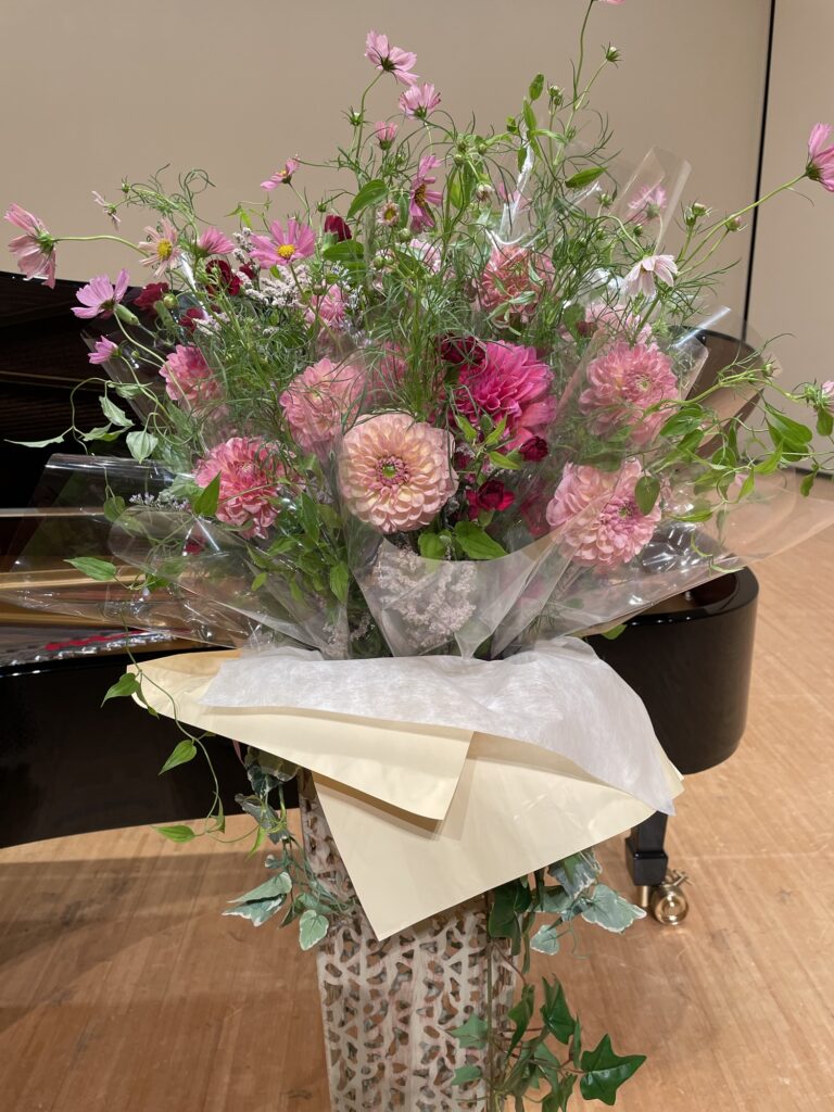 ピアノの発表会でのブーケスタンド すでに花束になっているので、分けやすくて楽です